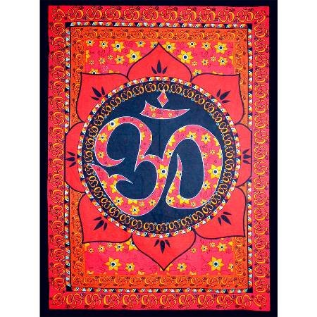 Description The ancient symbol of Om has been woven into the center of a red lotus flower. Vibrant golden flowers and swirls complete the tapestries design. Each beautiful tapestry is meticulously hand crafted from 100% cotton.