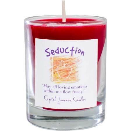 A great scented candle when you want to get in touch with your sacred space, allows us to enlighten our journey. Each Soy wax filled glass votive holder comes with an affirmation and inspirational message. Approximate burning time; 15 to 18 hours. Use Seduction Soy Herbal Candle to attract a lusty relationship. Use in combination with Love candle to put a spark back into a tired relationship. Clear glass votive holder filled with Musk, Patchouli, Pine, Cedar, and Juniper candle scents. Made in New England, USA